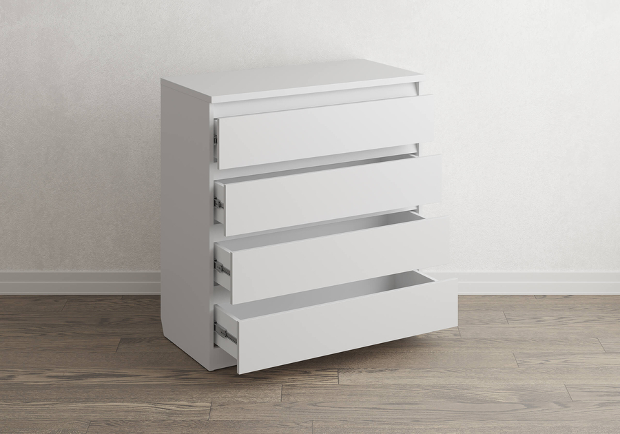 Aksel - комод без лишнего. Лаконичная скандинавская форма, четыре варианта цвета и скос под плинтус позволяют вписать его в любую комнату: спальню, гостиную, детскую или домашний кабинет и встать вплотную к стене без зазора. Надёжные шариковые направляющие обеспечивают плавное и лёгкое выдвижение ящиков без рывков и перекосов.