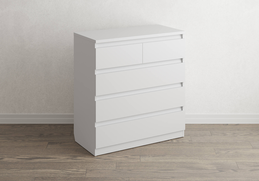 Aksel - комод без лишнего. Лаконичная скандинавская форма, четыре варианта цвета и скос под плинтус позволяют вписать его в любую комнату: спальню, гостиную, детскую или домашний кабинет и встать вплотную к стене без зазора. Надёжные шариковые направляющие обеспечивают плавное и лёгкое выдвижение ящиков без рывков и перекосов.