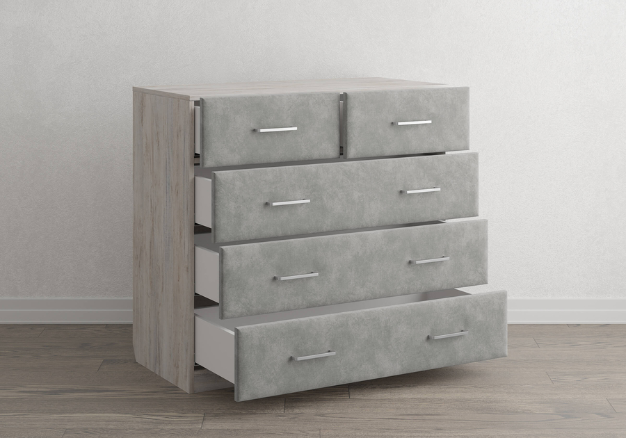 Tomas - комод, который адаптируется под ваш интерьер, а не наоборот. Мягкие фасады в ткани на выбор - от сдержанной однотонной гаммы до выразительных узоров - превращают его в акцентный элемент или органично вписывают в уже сложившееся пространство. Корпус из ЛДСП, скрытые направляющие с доводчиками и скос под плинтус. Всё продумано для удобства в ежедневном использовании.
